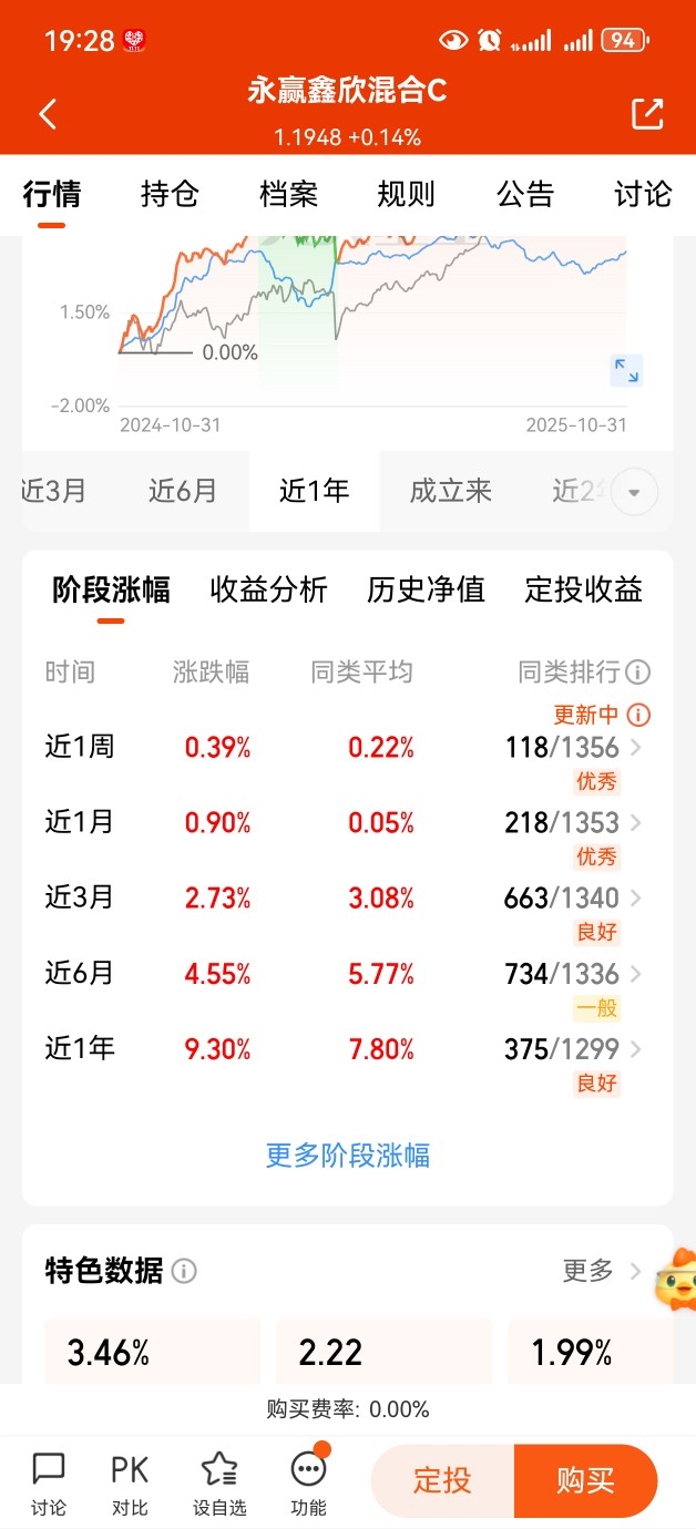 $永赢鑫欣混合C$ 今天收14个蛋,已经连续8天上涨,我们再看看其它阶段业绩,近一周收39个蛋,近三个月收273个蛋,近一年收930个蛋,超额收益明显,可见长期还是有不错的赚钱效应。这只属于股债对冲策略,无论股债都能贡献收益,既规避了风险,又冲刺了更高的收益,均衡配置还是不错的。#10月投资总结:我的收益如何了?#