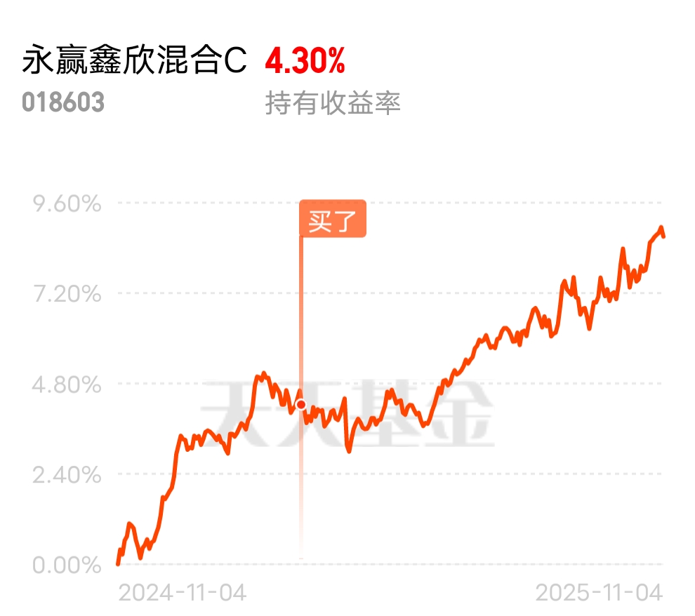 $永赢鑫欣混合C$喜欢这个攻守兼备基金,产蛋能力强,可以考虑增加配置