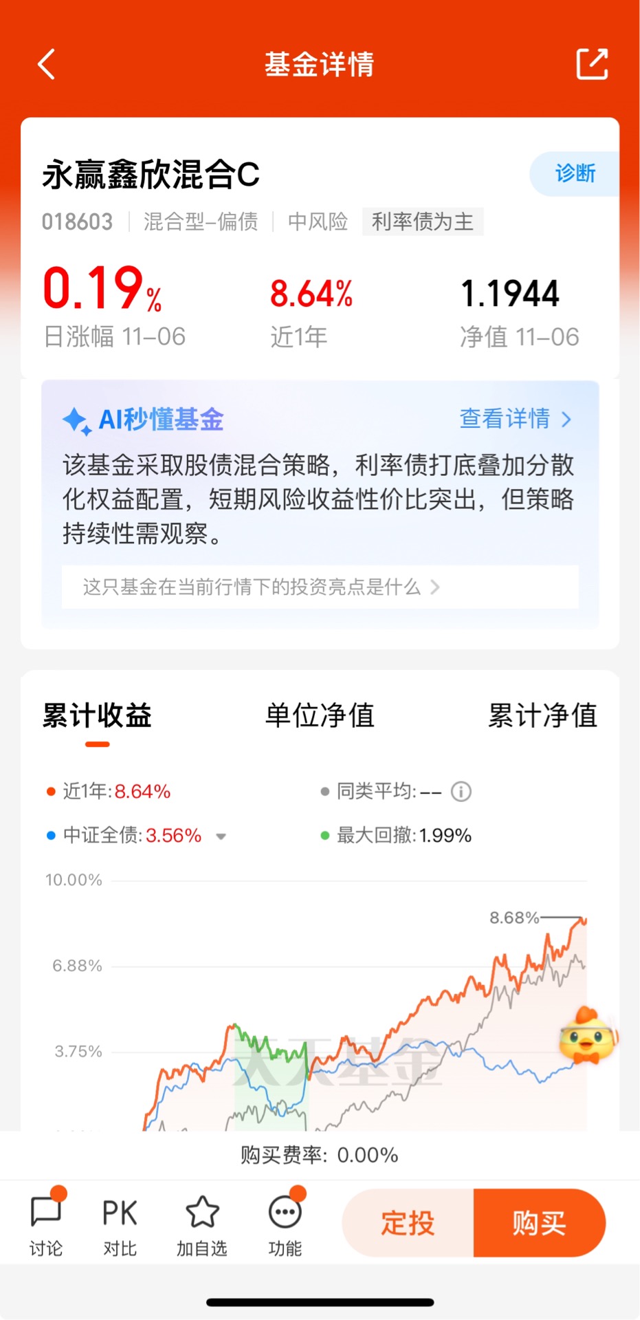 $永赢鑫欣混合C$ 今天涨回来19个蛋,近一个月收87个蛋,近3个月收203个蛋,近6个月收415个蛋,近一年收864个蛋,还有发展空间!这只属于股债对冲策略,无论股债都能贡献收益,既规避了风险,又冲刺了更高的收益,均衡配置还是不错的