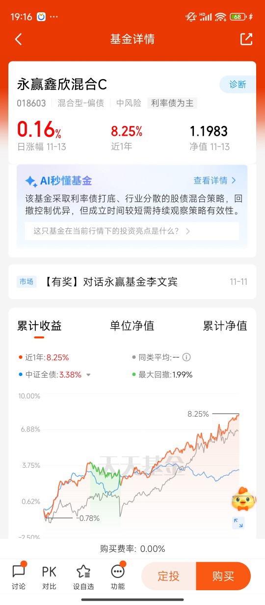#黄金又牛起来了!这次你上车了吗?# 兼具稳健又能配置均衡的固收+债基表现出色。$永赢鑫欣混合C$ 年化率涨幅达到8.25%。在市场震荡环境下,经受住时间的考验。业绩相当出彩。今晚收16颗蛋。近一月127颗蛋。近半年474颗蛋,短中长期积攒成绩都很稳健,这种股债组合相融性强,稳中有升,避开了市场调整的大起大落,还能稳稳的收蛋相当给力哈!