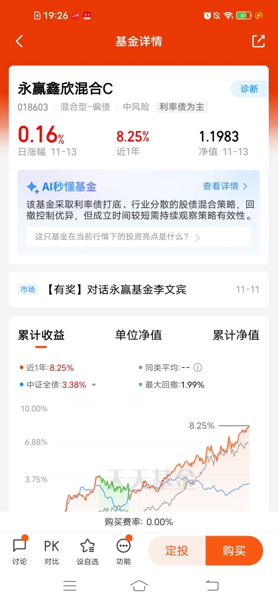 $永赢鑫欣混合C$ 稳健布局还是固收稳妥点,能涨抗跌,今晚更新收16个蛋,近三个月收252个蛋,近一年收825个蛋,收蛋能力不错,中长期更有优势,只配置权益风险大,当下均衡配置更适宜。而鑫欣就是以较高仓位债券打底,再配置一定的可转债、股票来增强收益,进退皆宜,也比较适合震荡市场。#AI应用类股票大涨:短剧概念逆势走强#