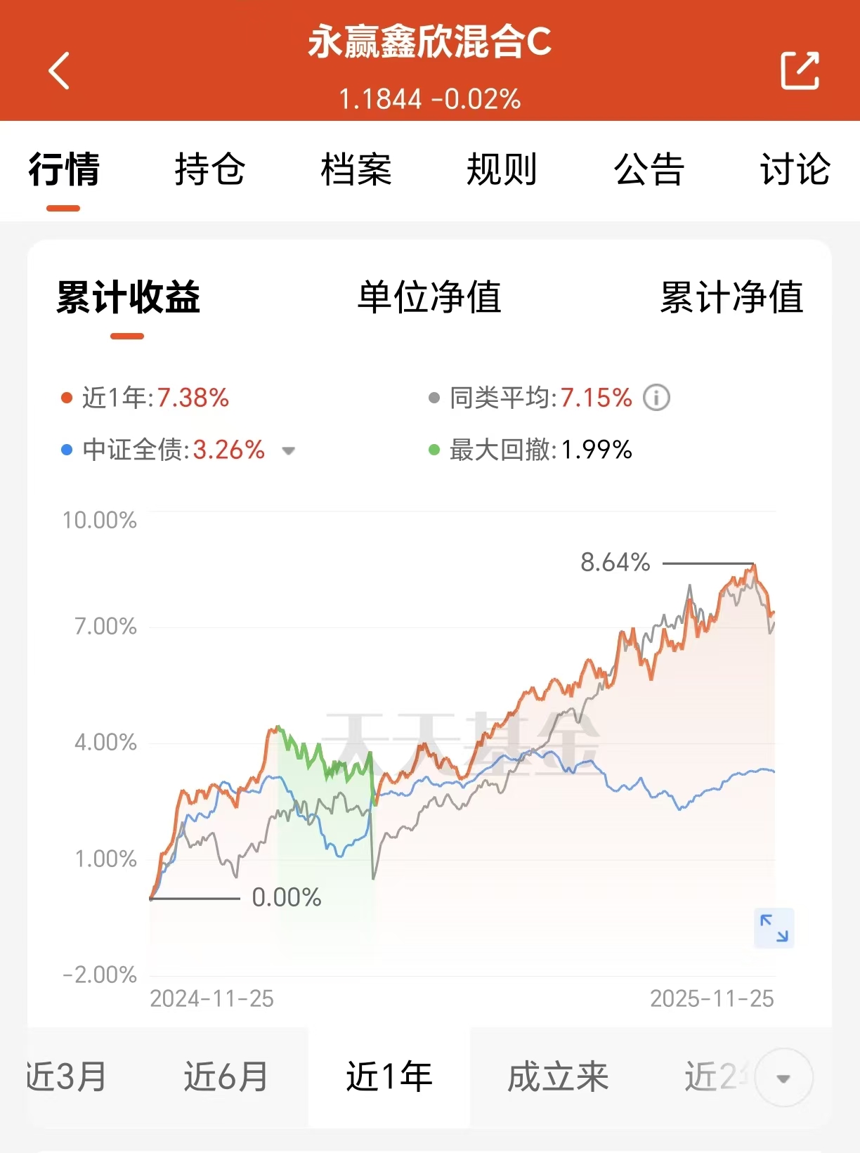 权益市场方面,虽然近期股市震荡,但年金等机构权益仓位已处高位,股市对债市的分流效应减弱,反而为固收 产品的"权益增强"部分提供了低吸机会。从历史数据看,2024年超过90%的固收 产品实现正收益,而普通股票型基金正收益占比仅60%,印证了该策略在震荡市中的比较优势。永赢鑫欣混合C(018603)通过灵活调整股债配比,既规避了纯债基金的收益天花板,又降低了权益资产的波动风险,完美契合当前"求稳又求进"的理财需求。