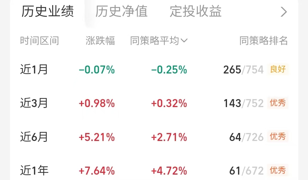 博时恒乐债券C采取股票增强策略持仓以60.39%的信用债和37.13%的利率债为底仓。股票持仓占比比较少,仅只有14.53%,主要分布在周期、科技、医药、新能源等板块。该固收+基金业绩稳定,波动小,整体来说是稳中求进的基调。今年第二季度和第三季度表现非常强势,业绩蒸蒸日上,近三个月收98个蛋,近六个月收521个蛋,近一年收764个蛋,中长期业绩表现还是很好的,所以我选择在今天建仓。