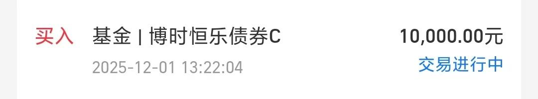 固收+基金:11月份权益、可转债、利率债持续震荡调整,固收+基金出现了比较明显的回撤。最近市场行情有企稳回暖迹象,当下是低位布局固收+基金的好时机。所以今天建仓$博时恒乐债券C(OTCFUND|014847)$,上车10000元。