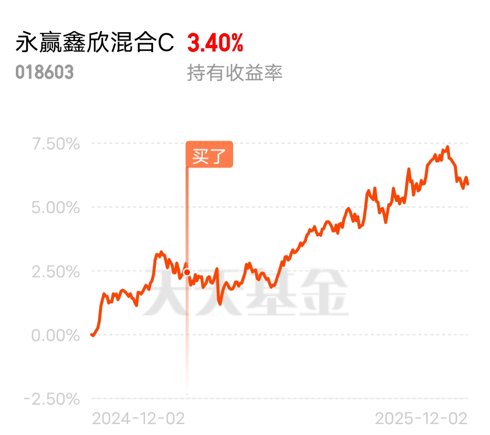 $永赢鑫欣混合C$相对来说持有固收+比较稳健,有波动也不大,耐心等涨了