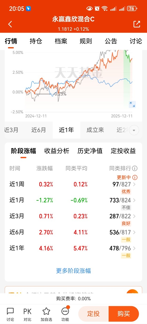 $永赢鑫欣混合C$是一只高收益混合债,固收+策略,约9债1股比例,股债对冲,除了债券部分收益,同时还能博取权益类高额收益。我们来看看业绩, 今天收12个蛋,近一周收32个蛋,近半年收270个蛋,近一年收416个蛋,相比同类平均收益超额明显,长期风格保持稳健。#【跨年坦白局】提问金梓才、陈果#