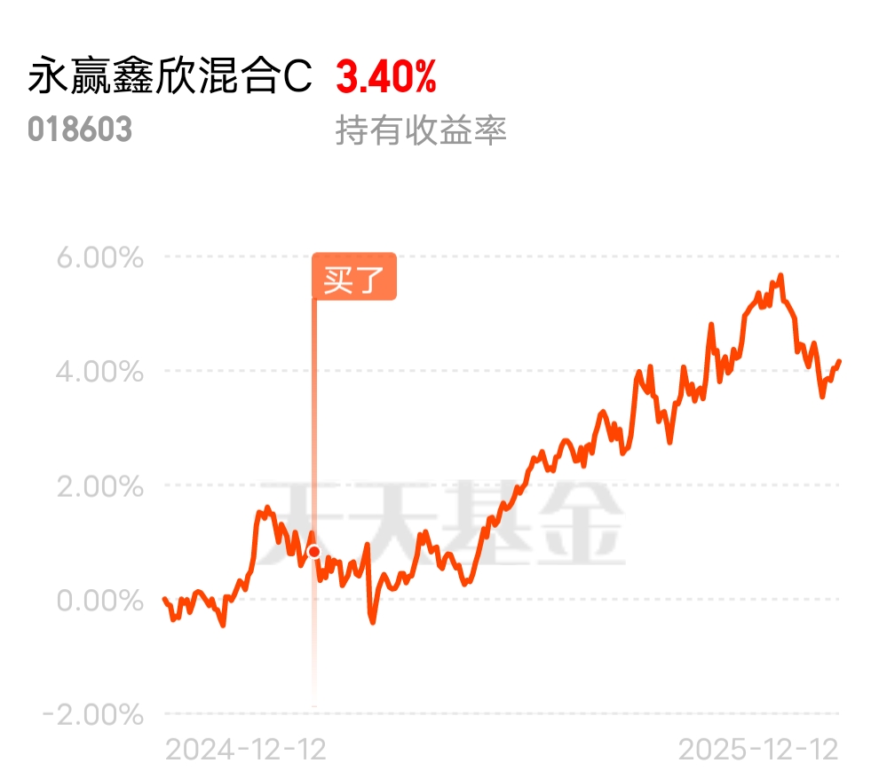$永赢鑫欣混合C$跟着拿长期看看,耐心等涨了