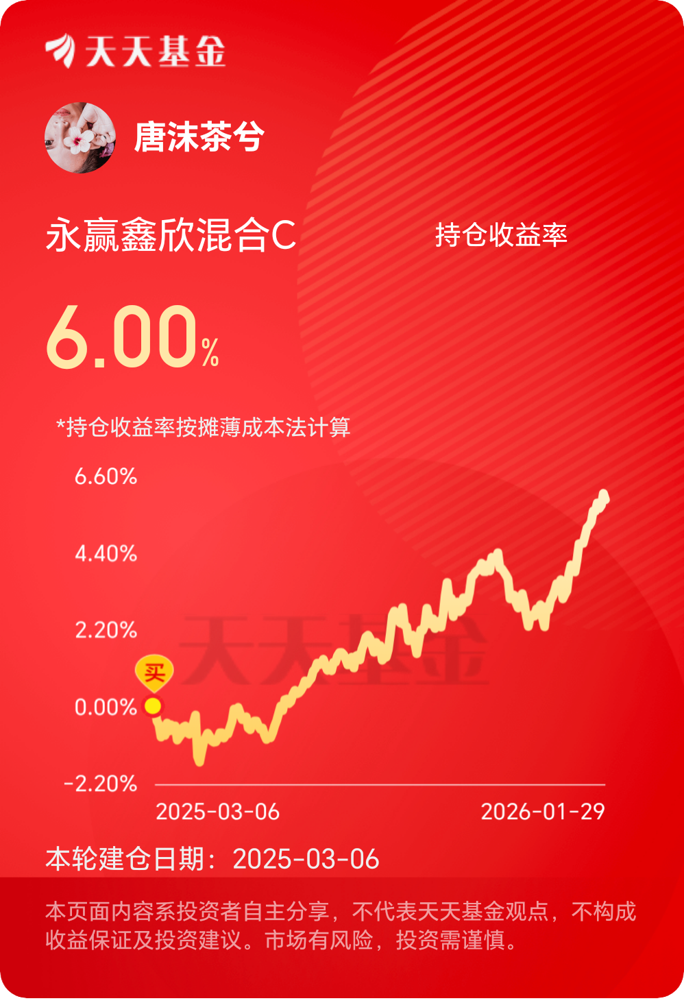 长期看好,短期波动当没看见。 $永赢鑫欣混合C$ #晒收益#