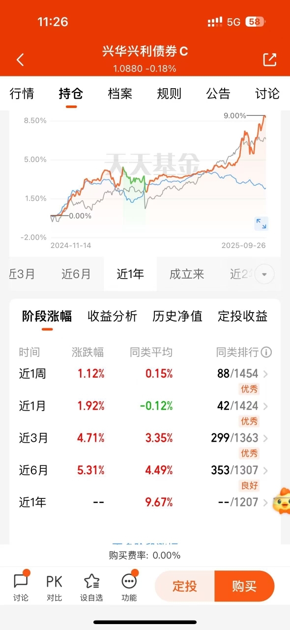 $兴华兴利债券C$ 排名前 2%,能适应现在的市场环境。