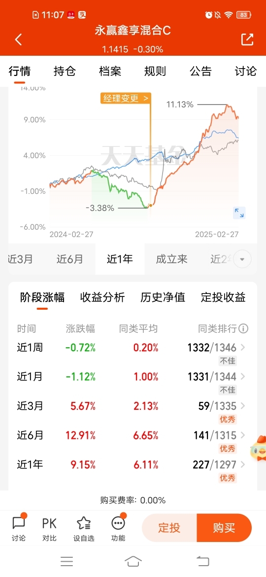 $永赢鑫享混合C$ 稳健的趁着调整布局起来,反弹能力强,主投长久期利率债,近三个月收567个蛋,近半年收1291个蛋,近一年收915个蛋,中长期也是不错的选择,稳健投资,权益类太难了,调整后布局,更有价值!跟上一波,目前热门纯债排名第一!不可多得的机会#晒收益#