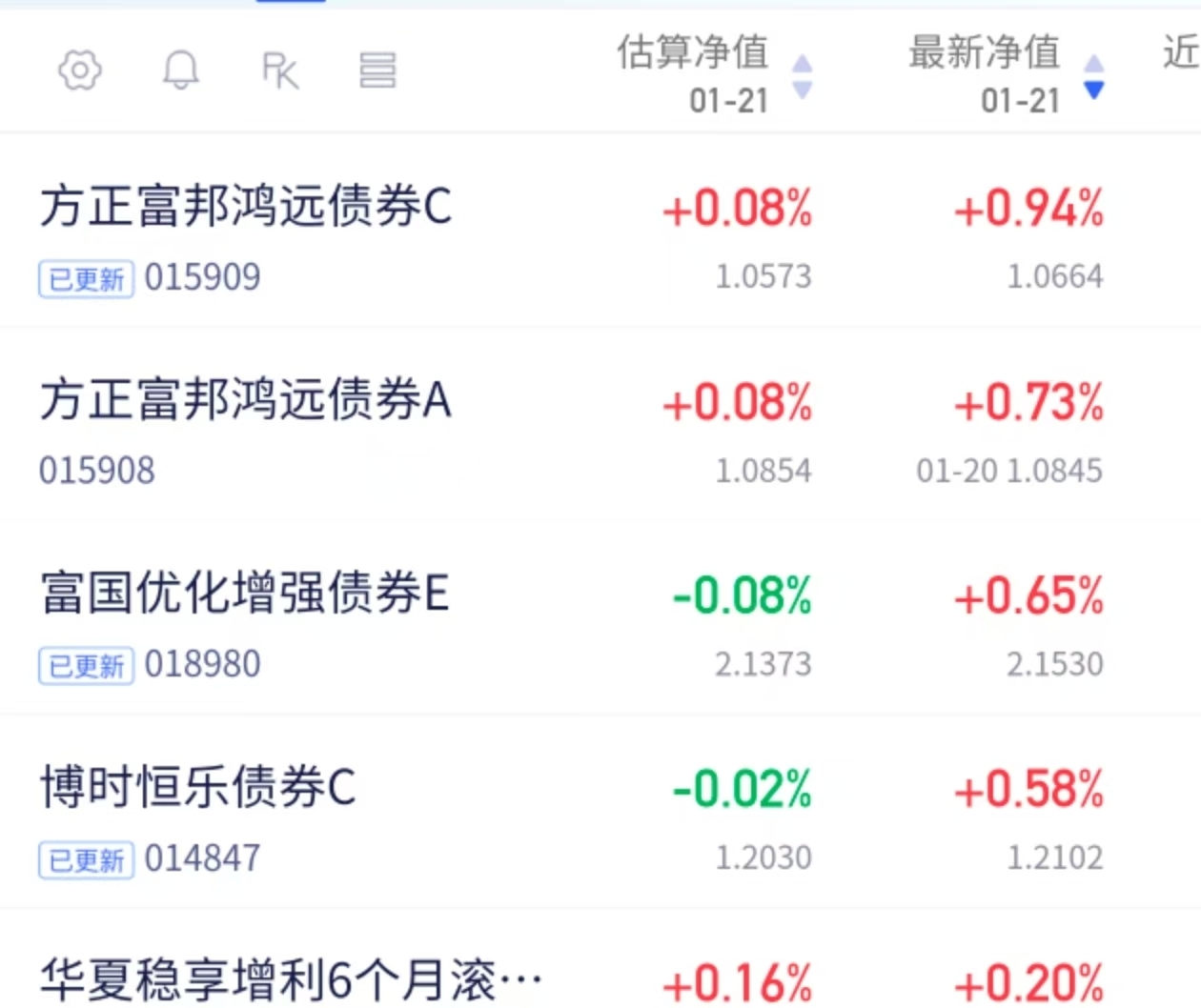 资金面保持宽松,利率债市场继续回暖。方'正'鸿'远今日上涨94个基点,其他产品收