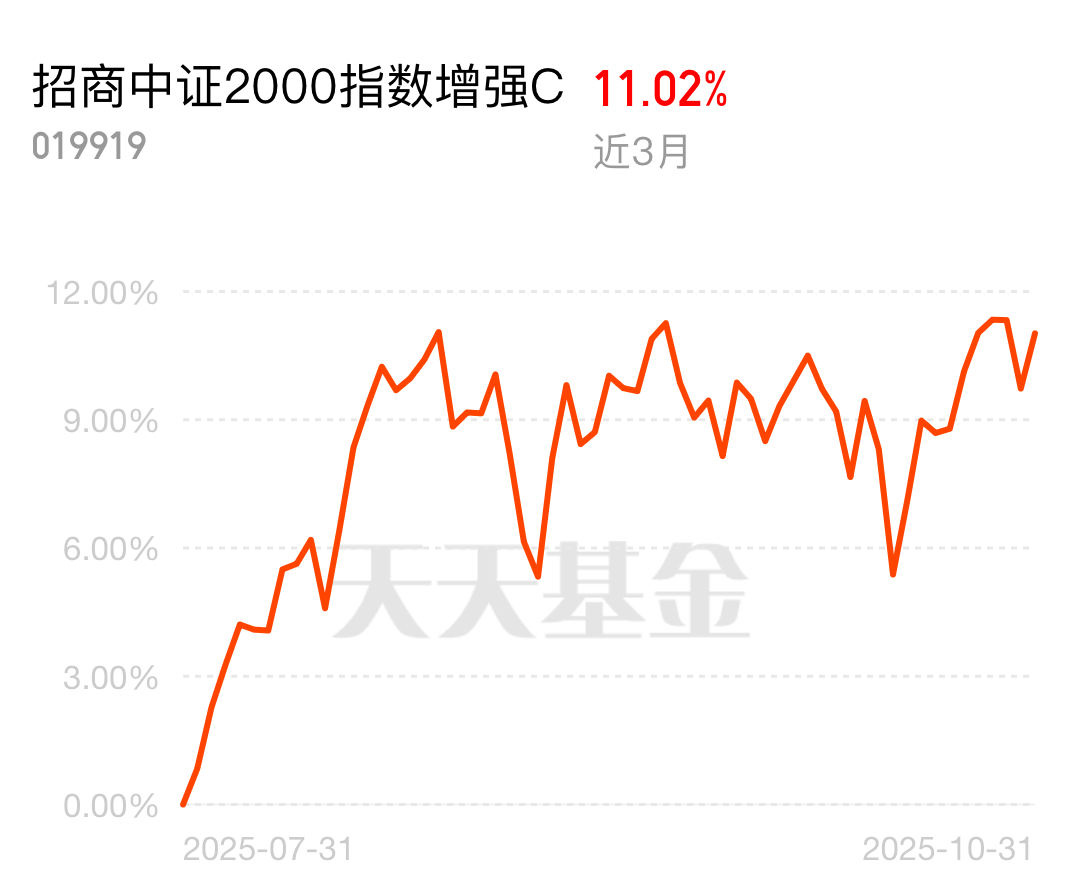 最近市场里,小微盘股的韧性很突出,大盘波动时它跌得少,反弹时又冲在前头。招商中证2000指数增强C近3个月涨11.02%,是布局小盘股的靠谱标的。