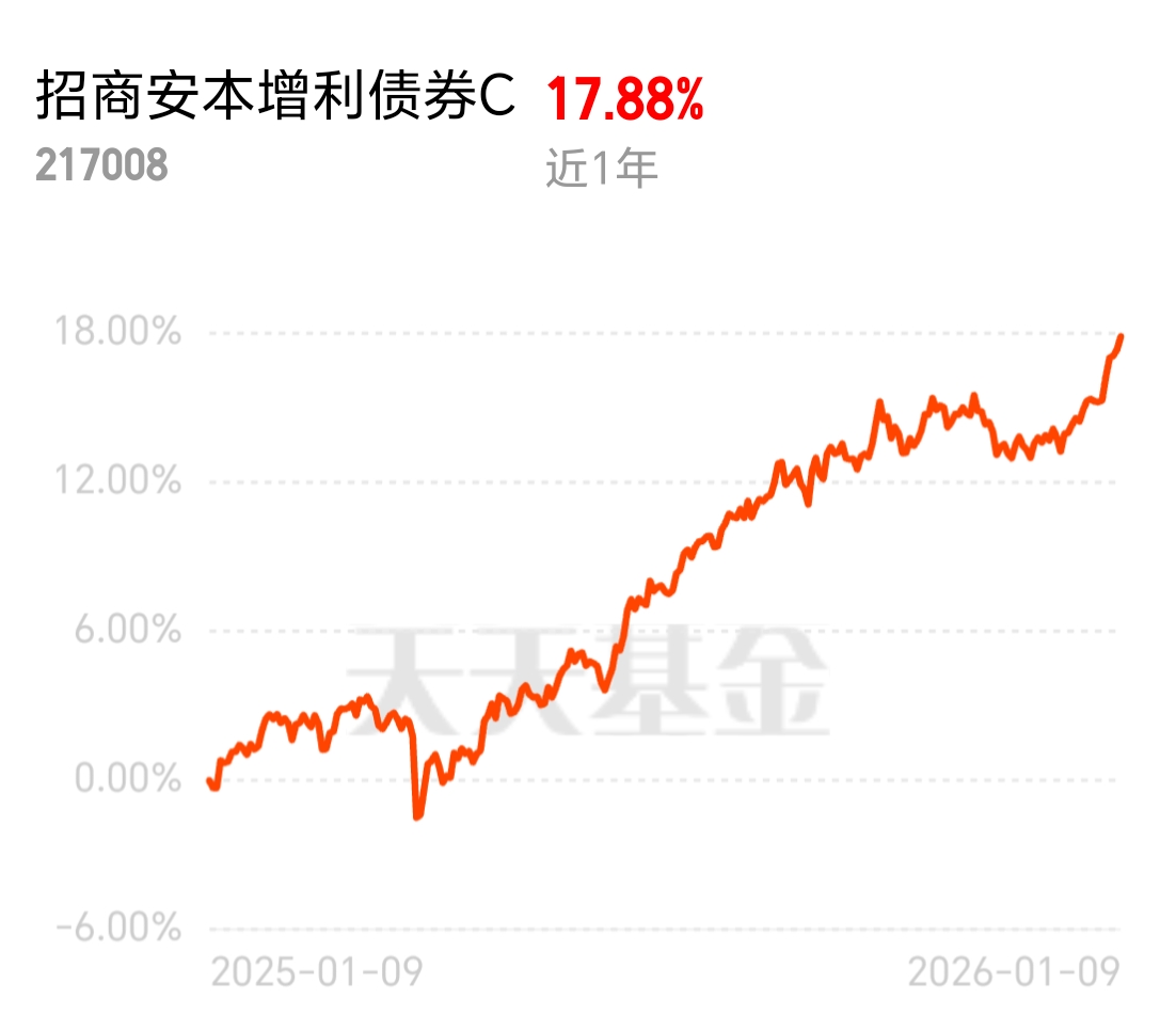 年底资金想稳又想留权益仓位?选招商安本增利债券 C 准没错。近 1 年 17.88%,上周五涨 0.45%,连涨 6 天赶超不少竞品,固收打底安全有保障,比高波固收 + 更适合普通投资者。$招商安本增利债券C$