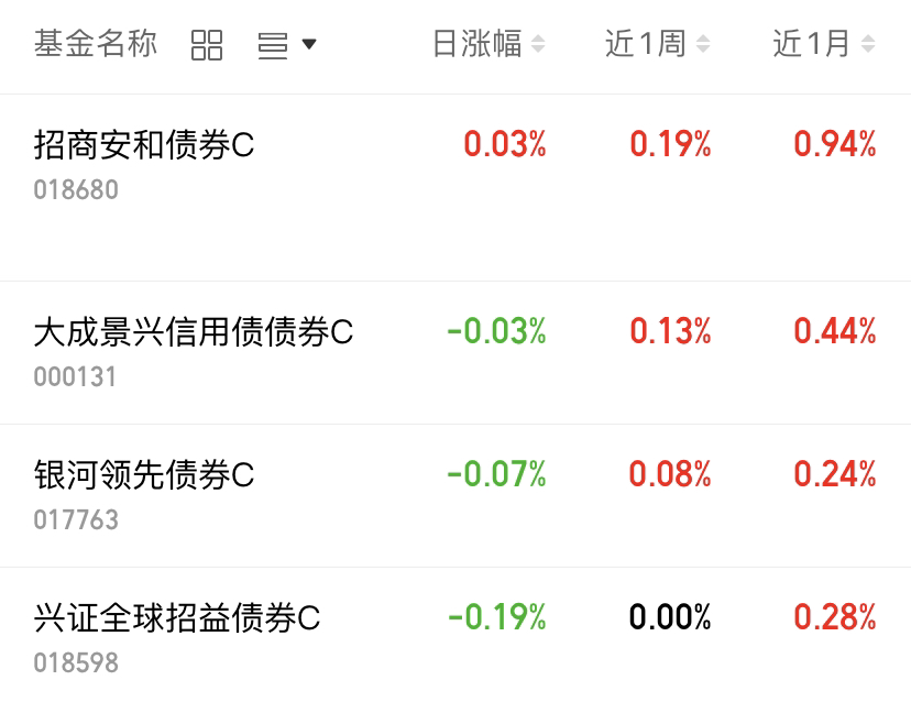 太难受了,权益估计回撤不少!还好今天债市不错,偏债基金又吸引人了。它又买债又买股,能适应不同市场,还能调二者占比,净值波动小,长期投资牛熊市都从容。$招商安和债券C(OTCFUND|018680)$近1个月收了94个蛋,$大成景兴信用债债券C(OTCFUND|000131)$收了44个蛋,$银河领先债券C(OTCFUND|017763)$收了24个蛋,$兴证全球招益债券C(OTCFUND|018598)$收了28个蛋,都是不错的选择!