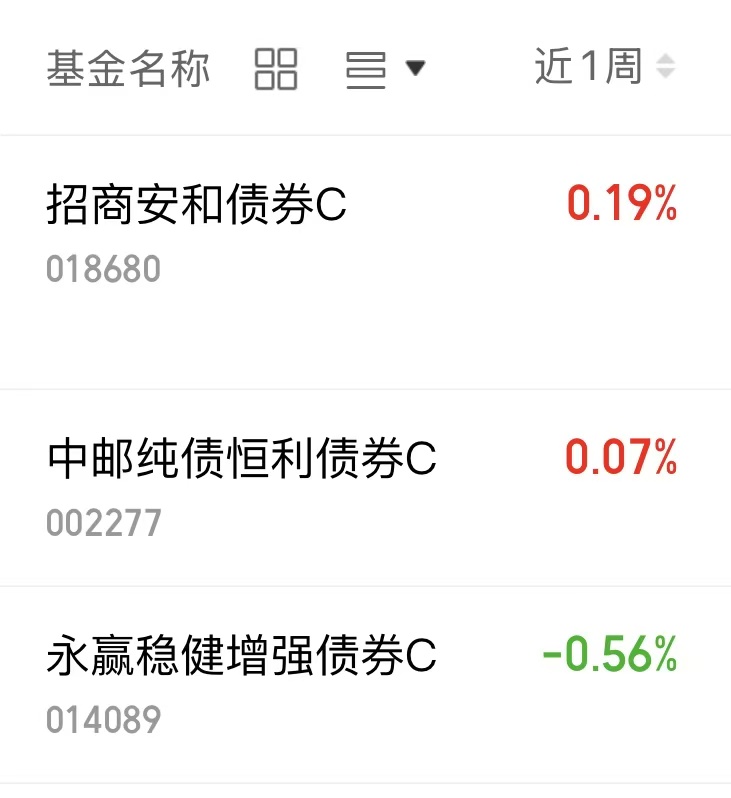 $中邮纯债恒利债券C(OTCFUND|002277)$近一周收7个蛋