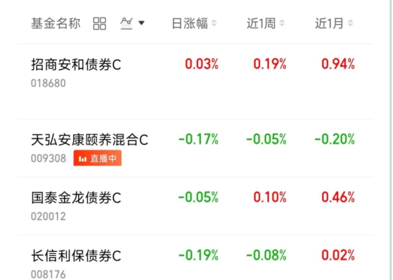 最近市场不太平,科技股还在调整,债市倒是迎来了一波不错的行情。考虑到市场修复可能还需要时间,我打算多关注债券方面的投资。手头几只债基表现各有不同:招商安和债券C(OTCFUND|018680)最近一个月表现亮眼,累计收了94个蛋;
