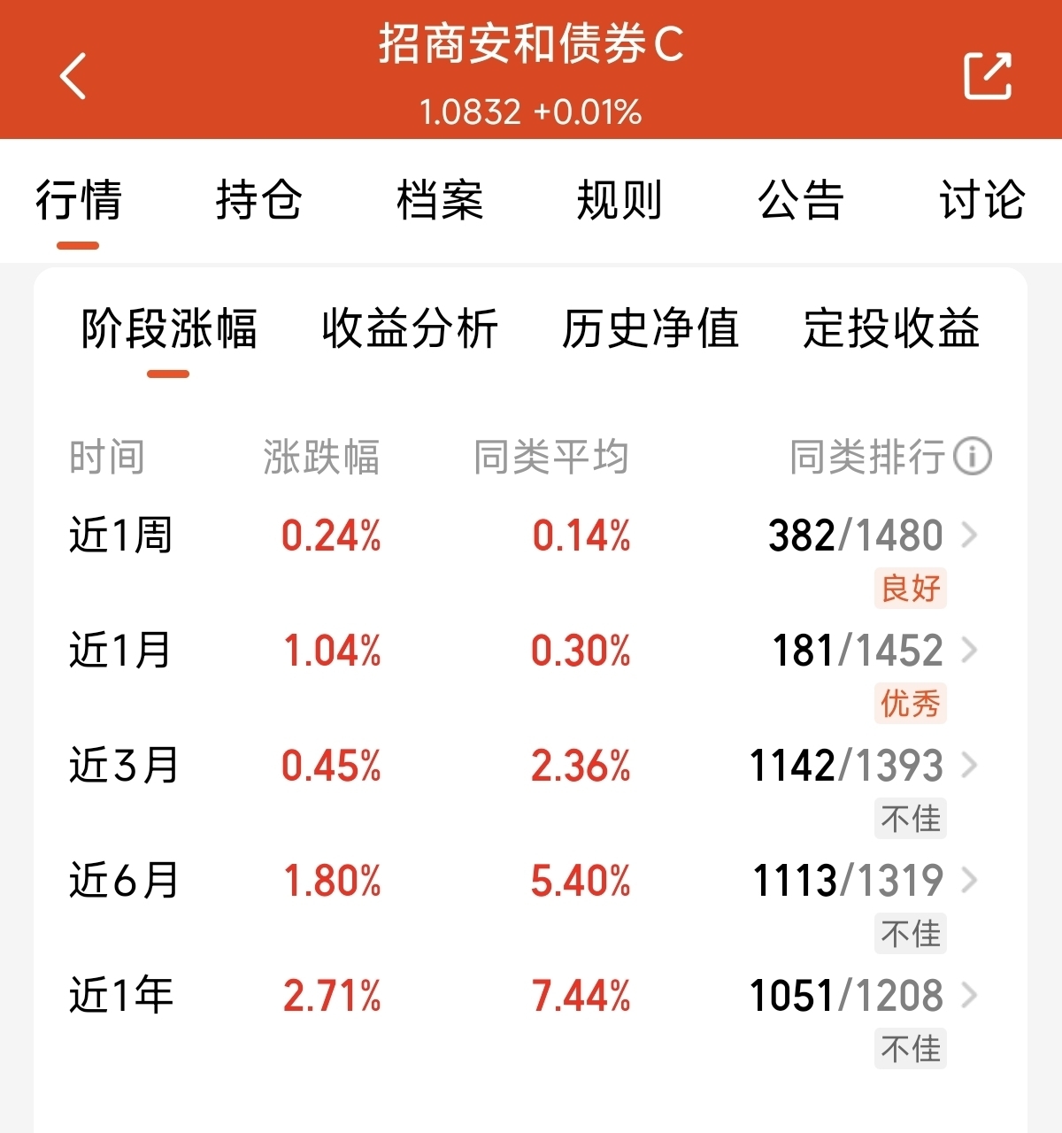 进入11月。权益市场不太稳定,债券市场也是持续分化,前期持续上涨混债纷纷也是出现了波动,但是$招商安和债券C$ 这只表现稳定的固收+近一周还收了24个蛋。稳定性的表现是真的好。长期表现做到了波动小,回撤小,稳定盈利的能力强。