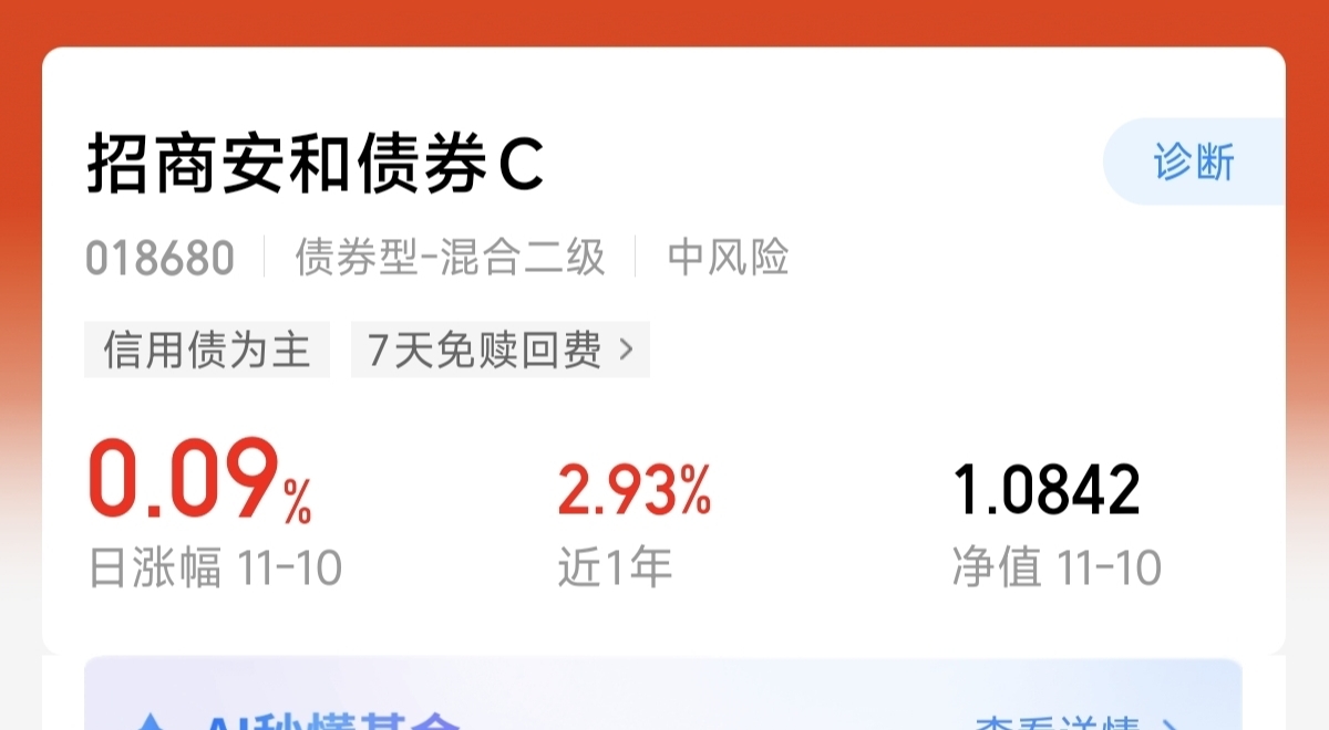 今天权益市场又是冲高回落。还是债券市场表现的比较稳定。当前继续看好股债兼备的固收+稳定的收益表现,$招商安和债券C$ 昨天又是9个蛋。稳定性的表现是真的好,遇到波动抗波动的能力也是比较优秀的。最近已经连续上涨。期待继续突破。