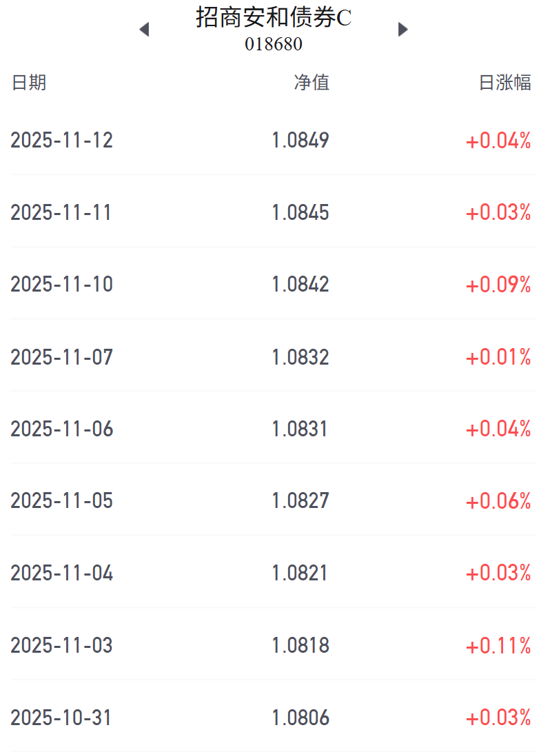 招商安和债券C昨又稳稳收下4个蛋,最近表现依旧给力,已经9连涨!在市场震荡的环境下,它凭借优质债券底仓+灵活配置策略,净值稳步上行,波动小、节奏稳。安和C主打稳健增值路线,抗风险能力强、回撤控制优秀。