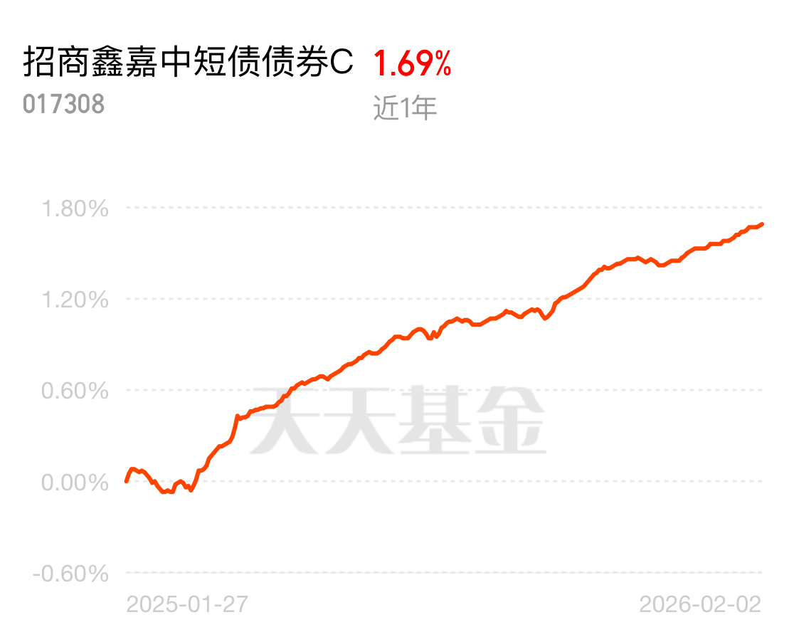 股市波动太吓人,半夜都要醒来看行情,短债让你睡个安稳觉!招商鑫嘉中短债债券 C 近一年 169 个蛋,昨天微涨稳赚,比货基收益好,7 天免赎回费,招商老牌靠谱,年前铁定限购,当下位置正合适。
