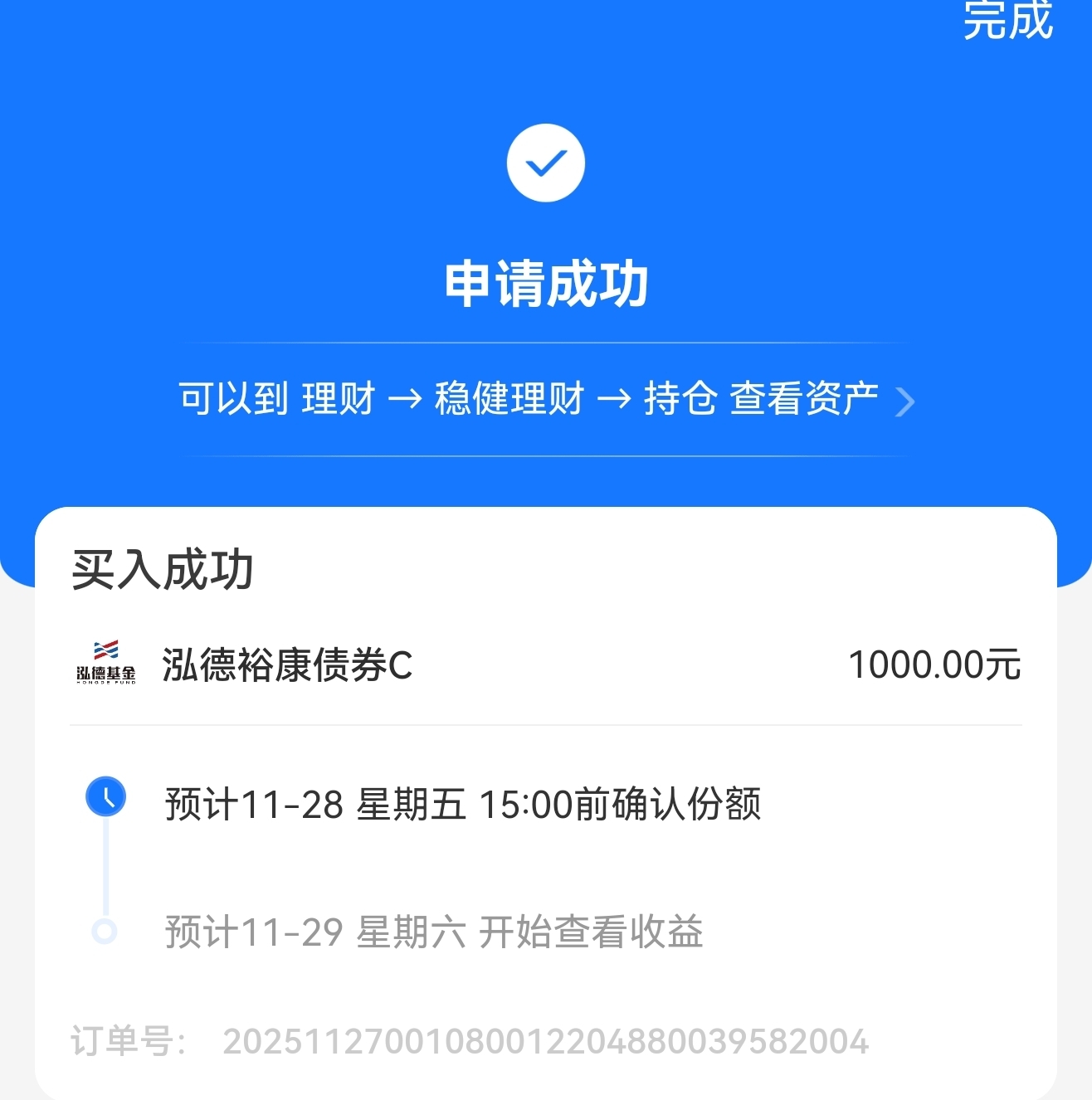 今天加仓的泓德裕康,主要是上周市场整体表现不佳,它小幅波动,很抗跌,更难得的是,它实现了近一年月月正收益,今年以来收益率7.61%,而最大回撤控制在1.51%。从持仓来看,它以红利资产作为压舱石,保证了底盘的稳固,同时用少量仓位配置了像寒武纪这样的科技成长股,来增强收益弹性。这种“守正出奇”的策略,比较符合我年底理财的心态了,今天决定加仓