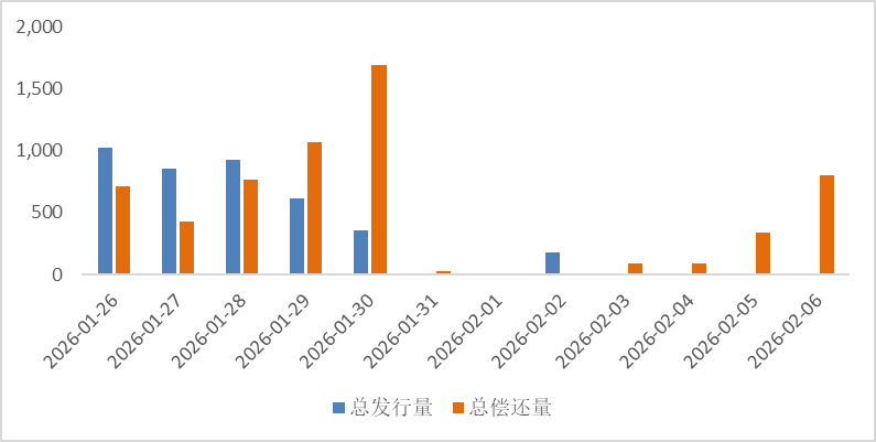 同业存单发行:本周(2月2日-6日)存单到期1339亿元,到期压力显著降低。