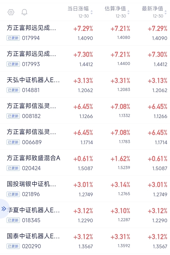 工业端需求稳,人形端进展快,11月产量连续回升。机器人双兄弟,远见和信泓,持仓集中在运动控制、感知系统等关键模块,今天受益于整个产业链热度提升。$方正富邦信泓混合A$ $方正富邦远见成长混合C$