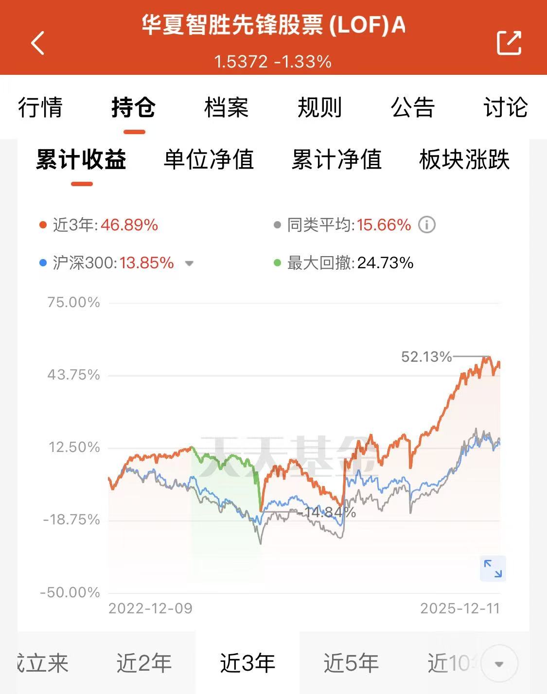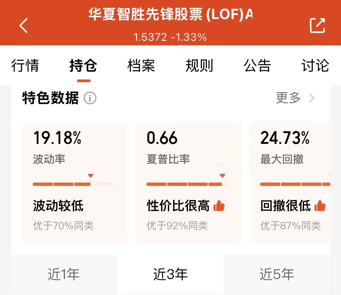 (2)业绩回报稳健:华夏智胜价值成长(A:002871;C:002872)、华夏智胜先锋股票(LOF)(A:501219;C:014198)、华夏智胜新锐股票(A:018728;C:018729)作为长期高仓位(超过90%)运行的股票基金。如华夏智胜先锋股票(LOF)A(501219)“近3年”最大回撤24.73%,“回撤很低,优于87%同类”的;夏普比率0.66,“性价比很高,优于92%同类”。
