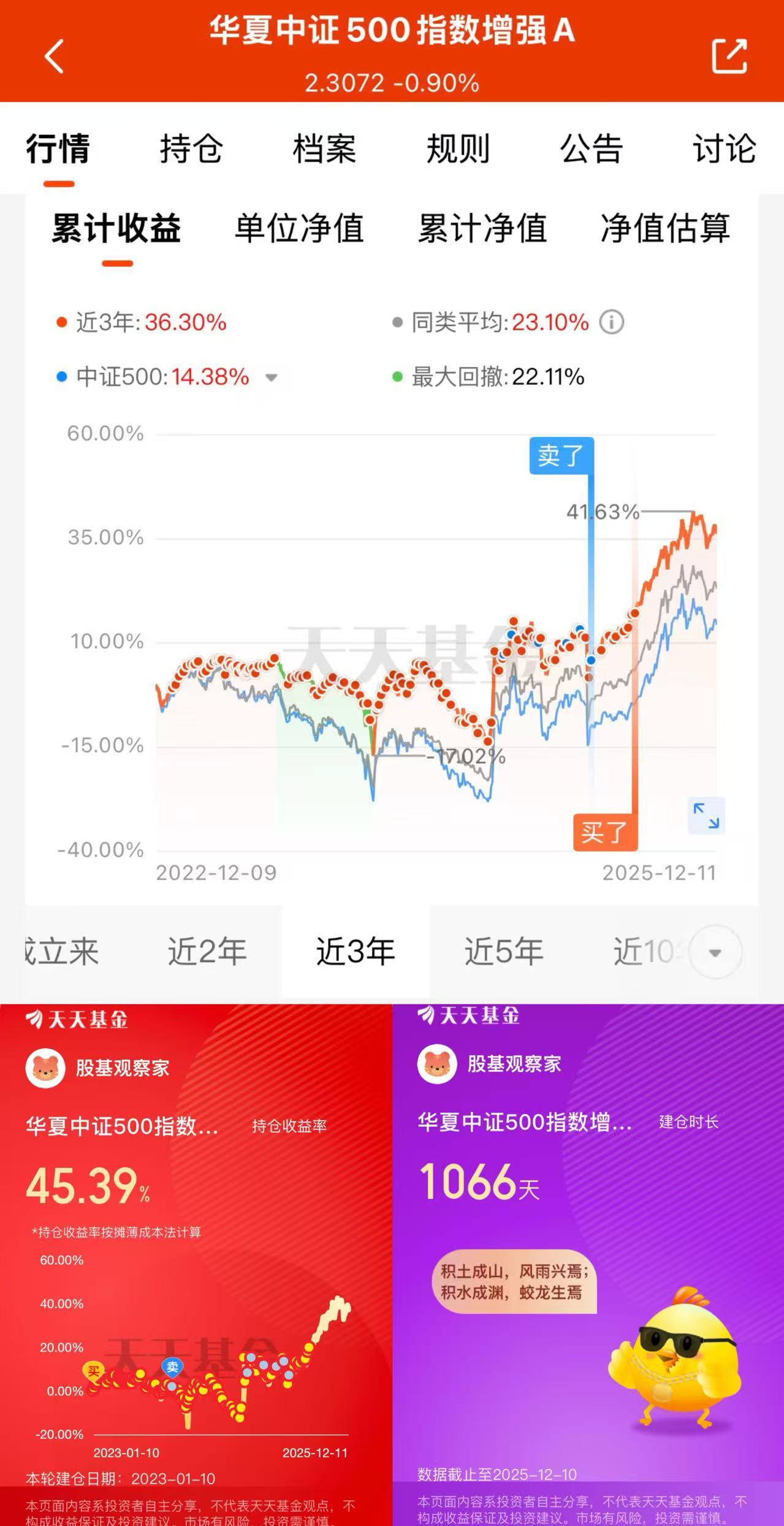 同时,早在当时路演活动之前,我就已经设立了孙蒙总的另一只明星指数基金——华夏中证500指数增强(A:007994;C:007995)的周“慧定投”计划,坚持至今已经超过3年时间,且收益率远超标的指数的表现。