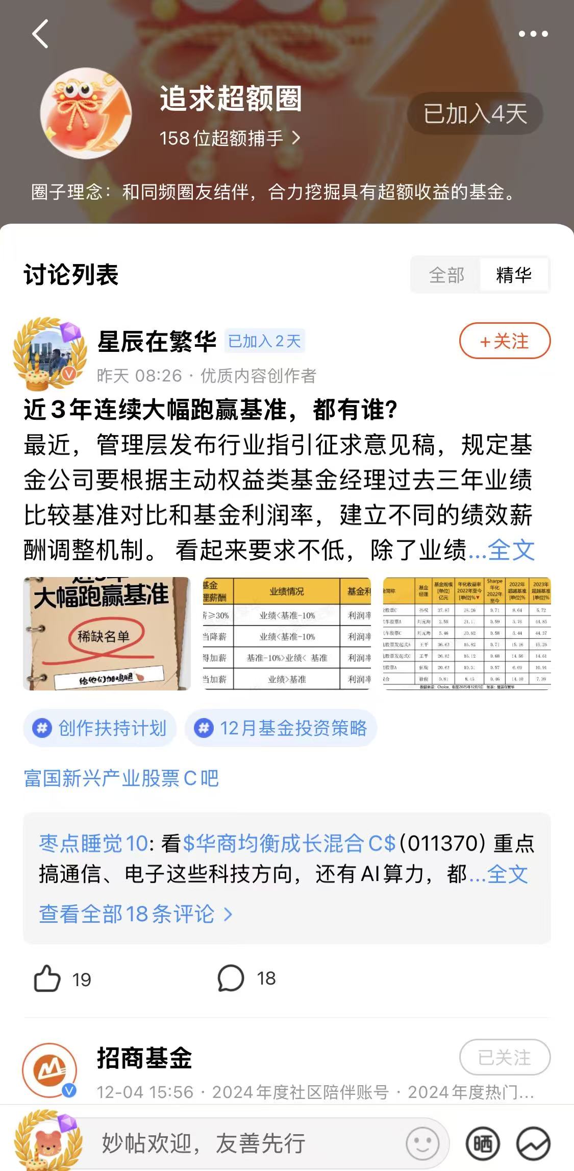 同时,我也加入了“追求超额圈”,愿意与喜欢量化投资、追求超额收益的天天基金网投资者朋友们多交流。