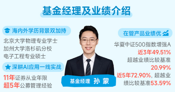 11年证券从业经历中,孙蒙先后在中信证券、华夏基金从事量化研究,2018年起担任华夏智胜系列基金经理。其管理的多只量化基金在不同市场环境下均保持稳定超额收益。