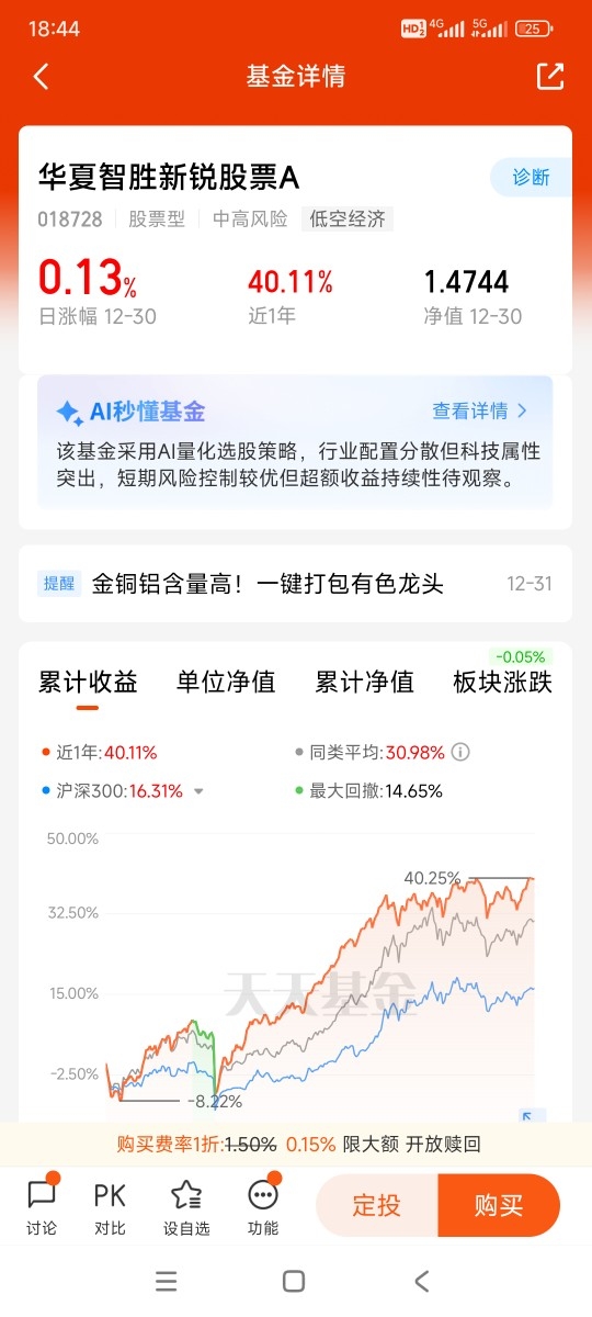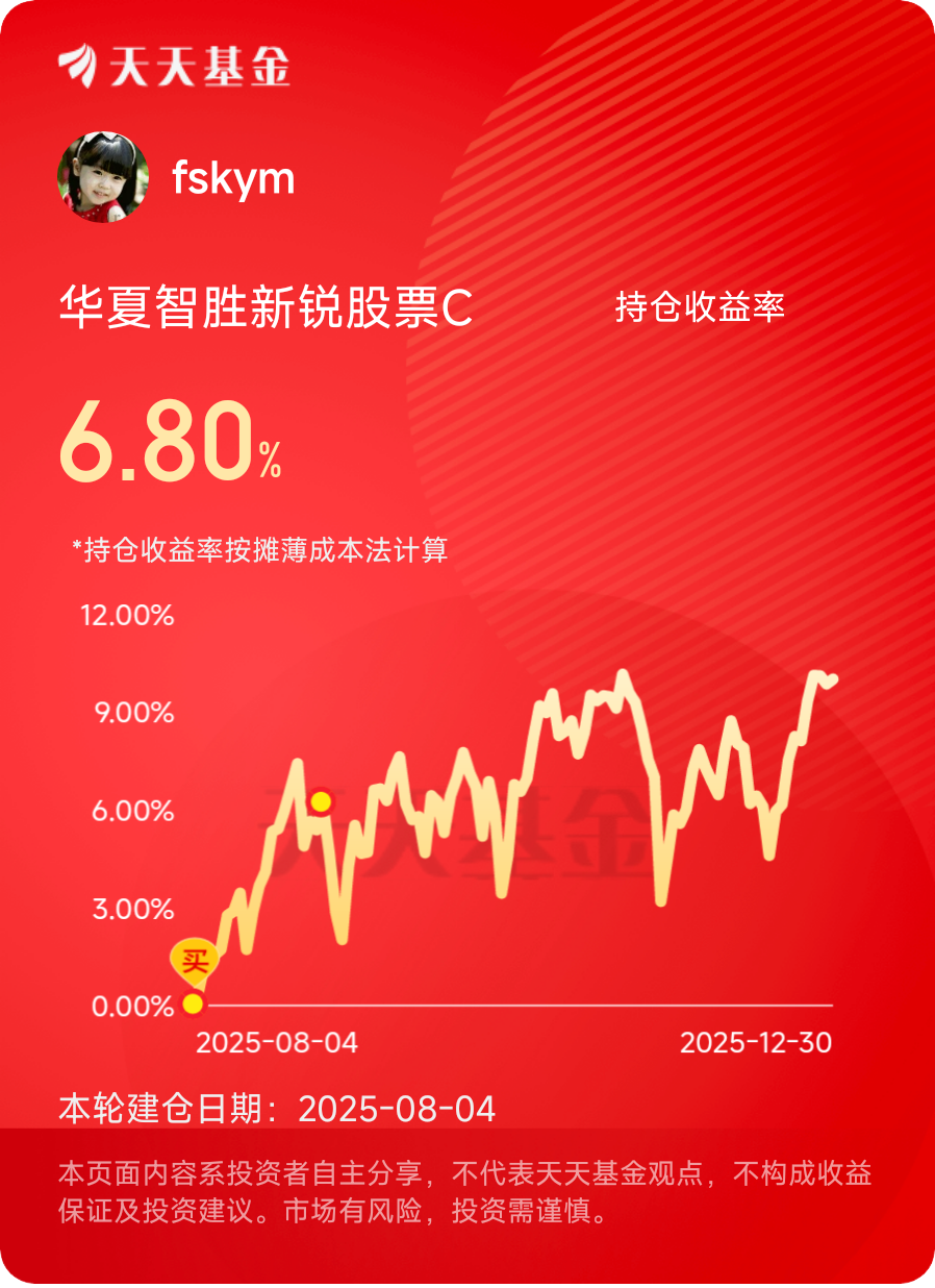 指数增强拼的就是功底,既要能稳稳跟上指数的收益,又要靠真本事赚超额的收益。华夏基金一边有完善的ETF生态和对指数的深刻理解做基础,一边有不断迭代的量化技术和风控体系做支撑,难怪能在扎堆的指增产品里脱颖而出。对于想跟着市场喝汤、又想多赚点超额收益的投资者来说,像华夏智胜新锐这样有硬实力背书的产品,确实值得多关注。@华夏基金