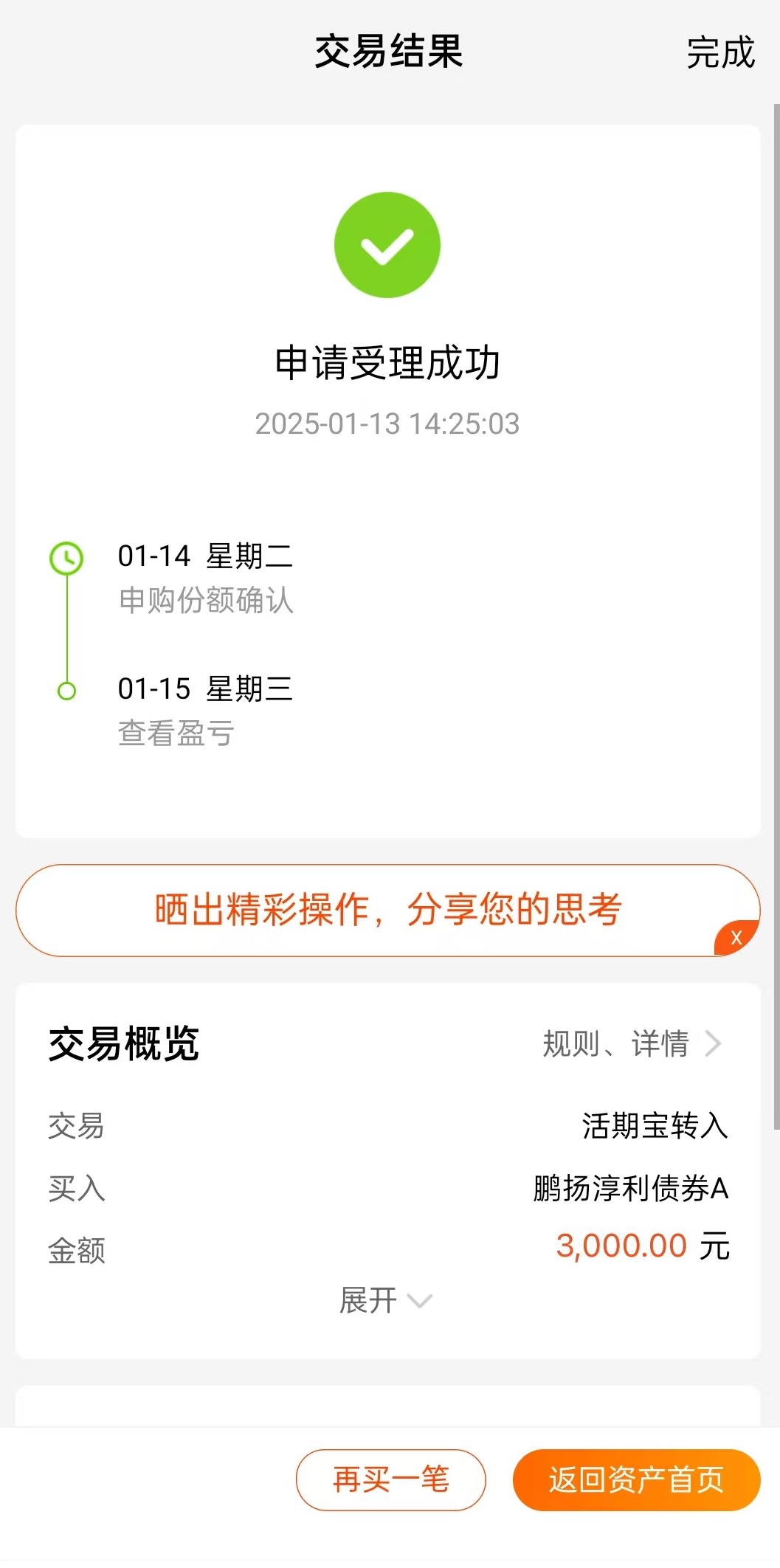 $鹏扬淳利债券A$最后7天上车机会,回调就多加点,一年快800个蛋,买的越低越合