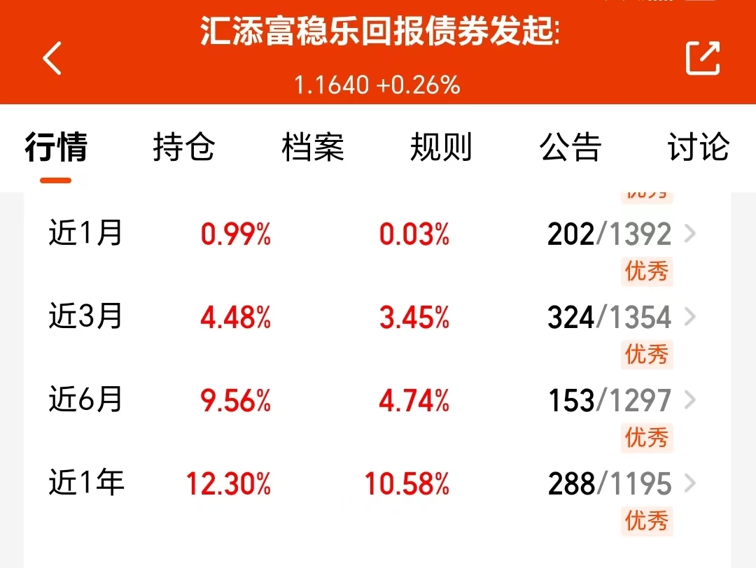 今日 A 股延续震荡回调,三大指数涨跌不一;债市同步震荡,利率债和信用债维持“小雨天”偏弱盘面。手里股基的波动也大,债市也不给力,纯债基今年的表现让我有点提不起劲呀,想加点仓又怕踩坑。复盘之前入手的$汇添富稳乐回报债券发起式C(OTCFUND|018768)$,现在看来是选对了,今天我继续追加一笔。
