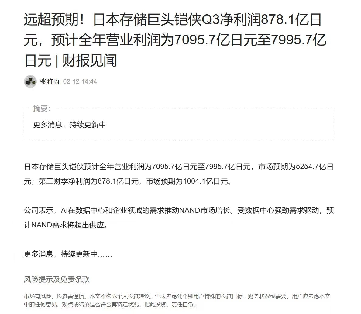 最近这存储板块也太猛了吧!之前一直趴着不动,现在突然起飞,看来科技周期因更多订单真的轮到存储芯片了!
