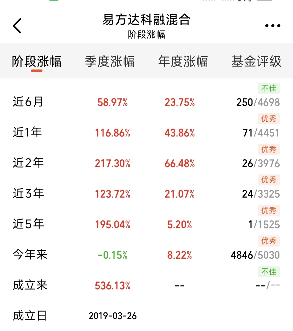 从目前市场的来看,整体还是一个分化上涨的格局。科技目前表现的比较好。但是单一赛道波动还是比较大。易方达科隆混合这只主动的科技混合基金。聚焦科技的同时还布局了周期港股等来防守。在本轮行情中的表现一直不错。近半年上涨了58.97%。持仓整体均衡。遇到波动回撤控制也是比较好。基金成立来已经涨超500%。创新高的能力强。我看好长期的稳定收益。