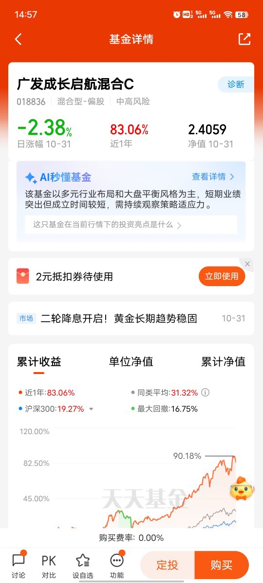 上周,十五五规划出台,下一个五年,科技创新成为主题,新兴成长类公司会有发展大机遇,也预示着未来五年科技赛道依然是主旋律,科技革命终将到来,国内的新兴成长领域上升潜力很大,虽然今年科技赛道很火,但未来五年它一样会继续发展,现在布局科技赛道依然来得及。$广发成长启航混合C$ @广发基金