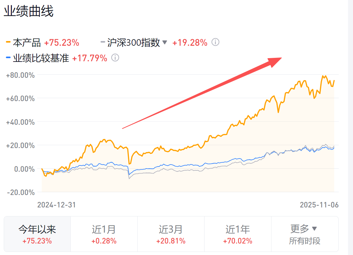在这一思路指导下,基金经理在今年三季度对军工板块进行了大幅调仓,兑现部分盈利并转向AI、存储等更具景气度的方向。在半导体、光模块、机器人等领域的布局也较早,体现出对产业趋势的前瞻判断。尽管成长板块近期出现回调,但其投资组合仍保持了较好的韧性与进攻性。