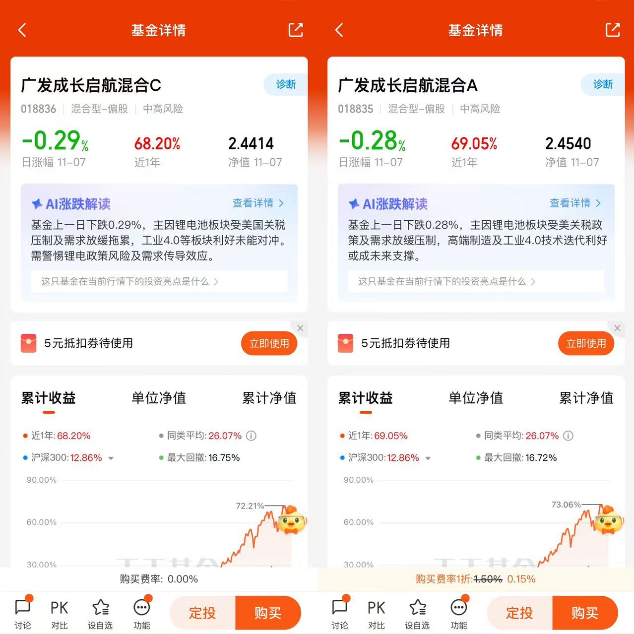 最后说说交易成本,这对咱们散户来说也很重要。它是C类份额,申购费是0,持有超过30天赎回费也是0,每年就收1.2%的管理费、0.2%的托管费和0.5%的销售服务费,算下来成本比很多基金都低。我之前买过A类基金,申购费就要1.5%,赎回费持有不满一年还要0.5%,光手续费就亏了不少,而这只C类的成本,对咱们想长期持有的投资者特别友好。