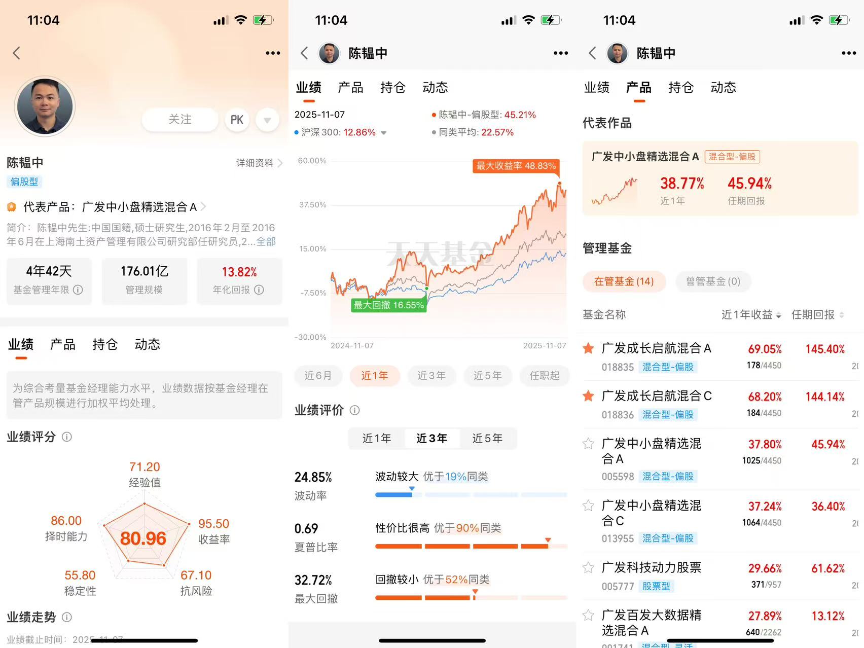 然后是基金经理陈韫中,别看他是“新生代”,能力是真不含糊。他2019年进的广发基金,现在管着6只基金,总规模超50亿,而这只成长启航是他管得最好的产品之一。你可能会担心“新人经验少”,但他的业绩摆在那儿:这只基金近一年收益在同类4450只里排184名,是“优秀”评级;而且他的投资风格很灵活,大盘平衡型占44.04%,再配点中盘价值和小盘平衡,不管市场是大盘股行情还是中小盘行情,都能跟上节奏。更重要的是,他背后是广发基金的投研团队——广发可是2003年就成立的老公司,现在管理规模超1.5万亿,投研实力行业靠前,有这样的团队兜底,基金经理选股、择时的底气肯定更足。