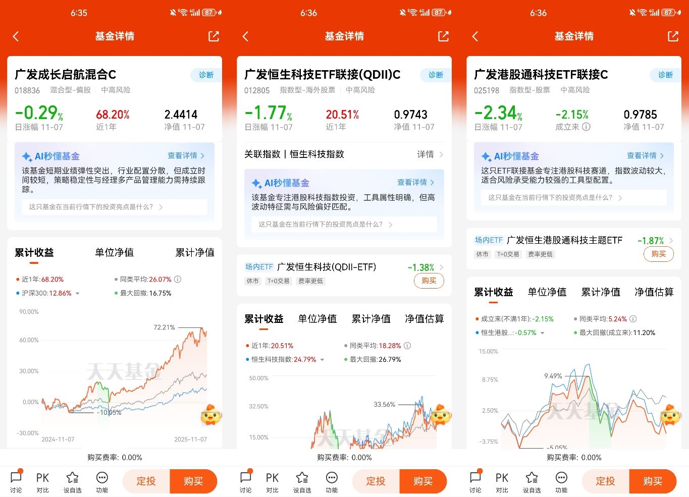 #科技后市怎么看?# $广发成长启航混合C$ $广发恒生科技ETF联接(QDII)C$ $广发港股通科技ETF联接C$ 最近科技板块一震荡,群里都在喊“要不要跑”——但我反而盯着广发成长启航混合C挪不开眼,这只基简直是震荡期的“定心丸”!