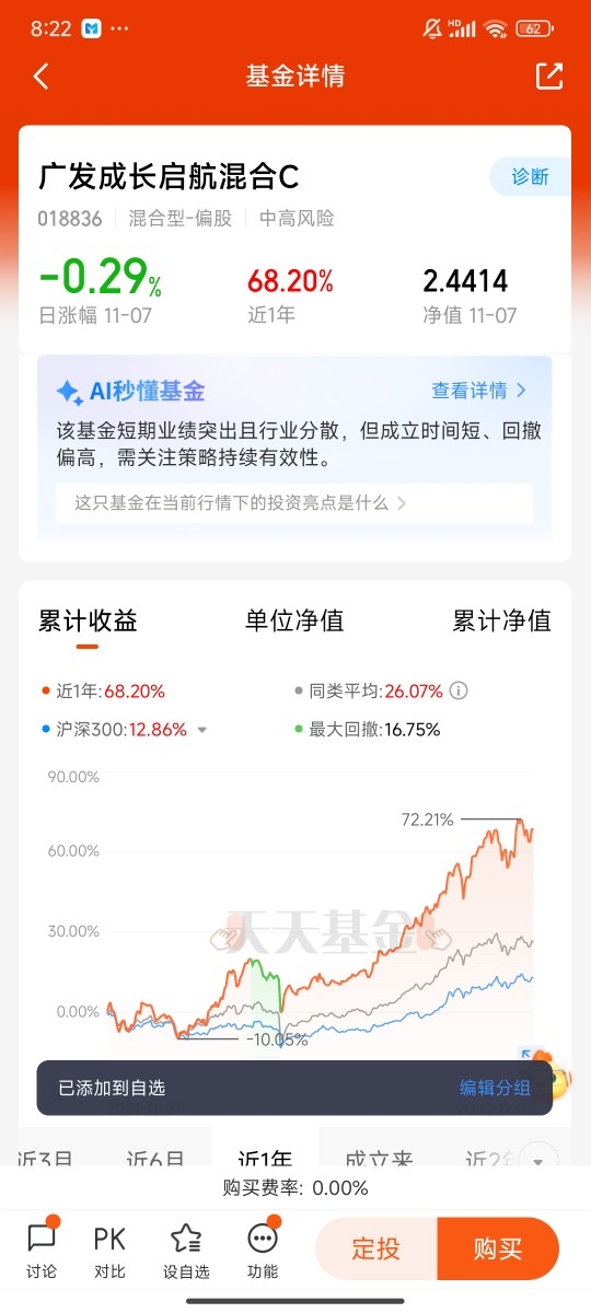 思来想去,我最终决定,不纠结于个股的“割肉”或“加仓”,而是把目光投向了基金。经过一番筛选,我把目标锁定在了广发成长起航C上。选择这只基金,主要有三个原因。