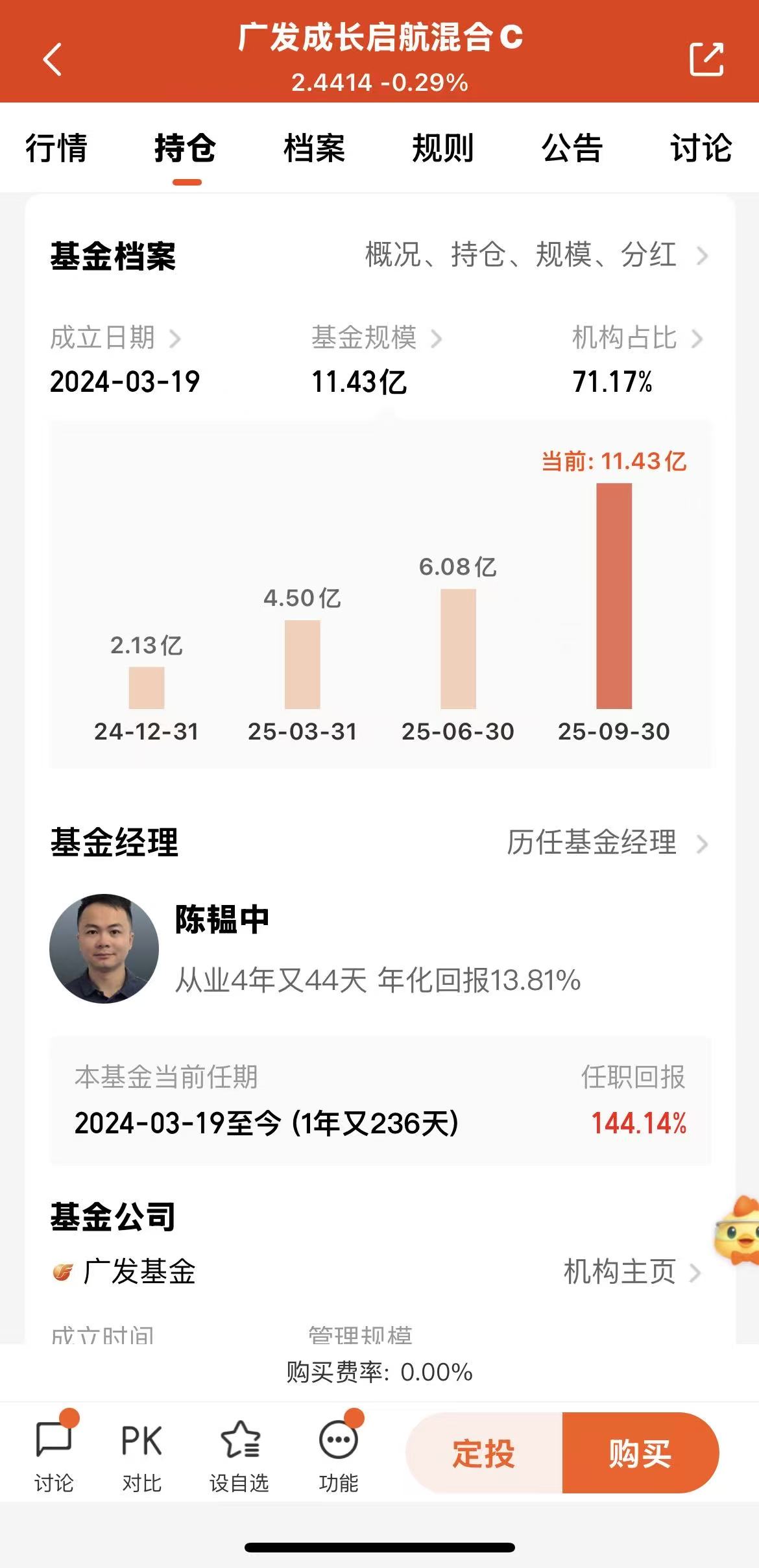 有幸参与11月6日天天基金调研,本次调研相关的是广发成长启航,基金经理陈韫中,今天我们就来说说,本基金何以在去年3月份成立,距今不到2年的时间,收益率高达144.14%?基金经理陈韫中的投资框架是如何形成的,对我们有什么启发?