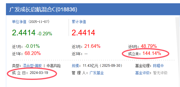 1、近一年收益率68.2%,成立不到两年收益率144.14%