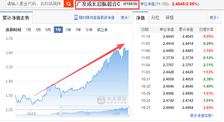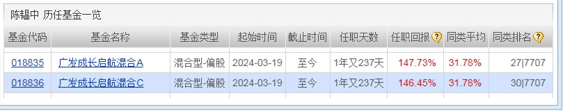 广发成长启航混合(A类:018835,C类:018836)在陈韫中经理管理的一年多时间,任职回报超过140%,是同类平均的4倍多,在同类7000多只基金中,排名进入前百分之一的位置,更准确的说是千分之三。