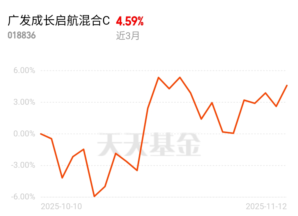 在市场分化加剧、行业轮动提速的当下,精准把握高景气赛道成为投资盈利的关键。广发成长启航混合C(018836)凭借灵活的轮动策略和对优质赛道的敏锐捕捉,交出了亮眼成绩单——近12个月涨幅达61.40%,近6个月收益飙升50.66%,11月12日单日涨幅亦达1.93%,其背后正是对三大核心赛道的坚定布局,成为普通投资者分享成长红利的优质工具。
