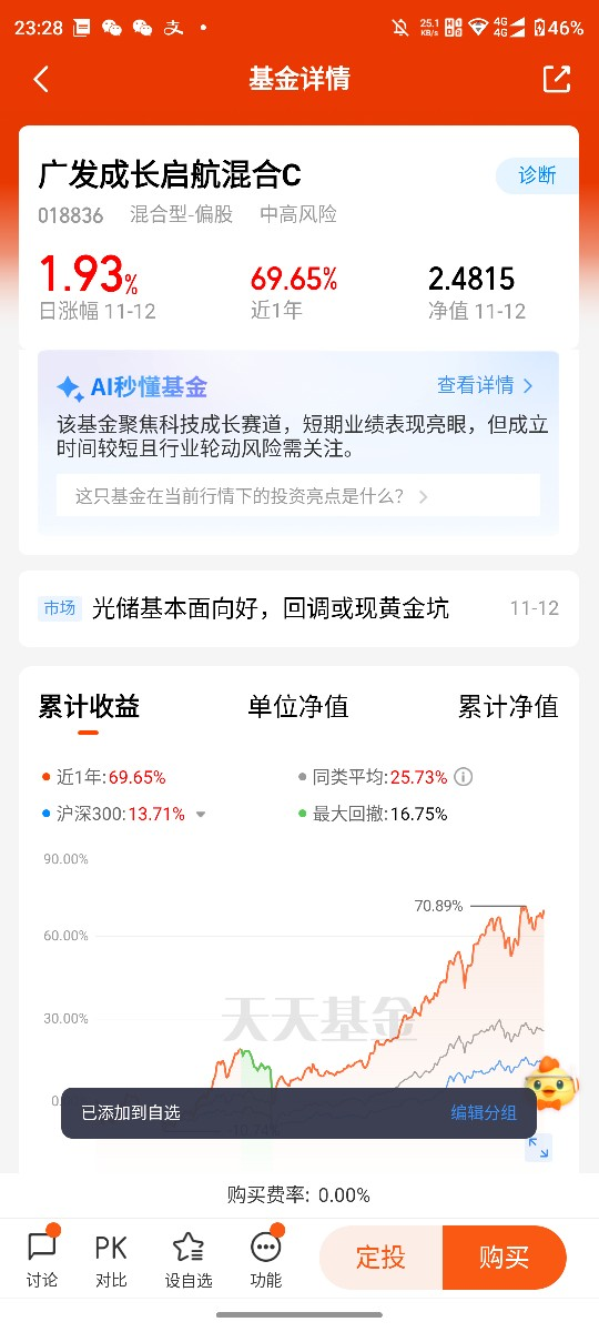现在市场里基金不少,但想选到能稳稳跟上趋势的并不容易。广发成长启航混合C(018836)这只基金就很有意思,磕单一赛道,而是盯着市场里最有潜力的成长方向灵活调整,近12个月涨幅已经达到61.40%,最新净值也涨到了2.4815,表现相当亮眼。今天就用大白话聊聊,这只基金重点布局的三大赛道为啥值得看好,普通人该怎么把握机会。