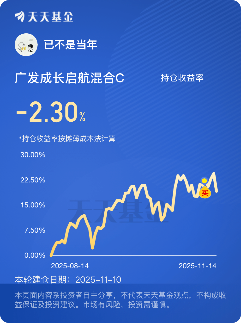 但千万要记住:市场没有常胜将军!主题基金波动本来就大,再辉煌的历史业绩也不能简单认为未来就能复制。在拥抱AI带来的历史性机遇时,保持理性、做好研究(哪怕只是选基金的研究)、理解风险、坚持长期视角,或许才是我们普通投资者在时代浪潮中“稳住船舵”,最终真正分享到产业成长红利的关键。未来的路还长,AI的故事也才刚刚翻开精彩的篇章,让我们保持关注,谨慎前行,别让时代的红利,变成了自己钱袋子里的教训!!!$广发成长启航混合A$ #晒收益#