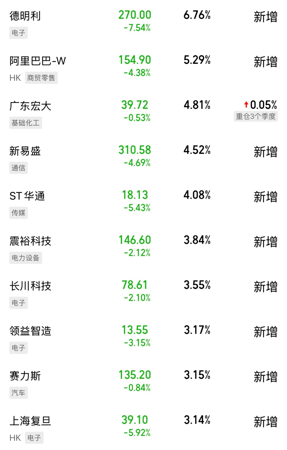 看看它最新的三季度前十大重仓股披露,包括德明利(半导体)、阿里巴巴(互联网平台)、广东宏大(化学制品)、新易胜(通信设备)、世纪华通(游戏)、震裕科技(电池)、长川科技(半导体)、领益制造(消费电子)、赛力斯(乘用车)、上海复旦(半导体)。前十持仓集中度在42.31%。这些公司都是半导体和AI应用上的核心企业。特别是阿里巴巴,已最先受益于AI研发,开始在广告推广上植入AI大模型,对企业业绩起到了真正的改善。而德明利、上海复旦等则是国产半导体的代表企业。说白了,它试图用一种相对均衡的方式,帮我们普通投资者“一键布局”整个科技赛道中的核心环节,避免把鸡蛋都放在一个篮子里,分散风险。