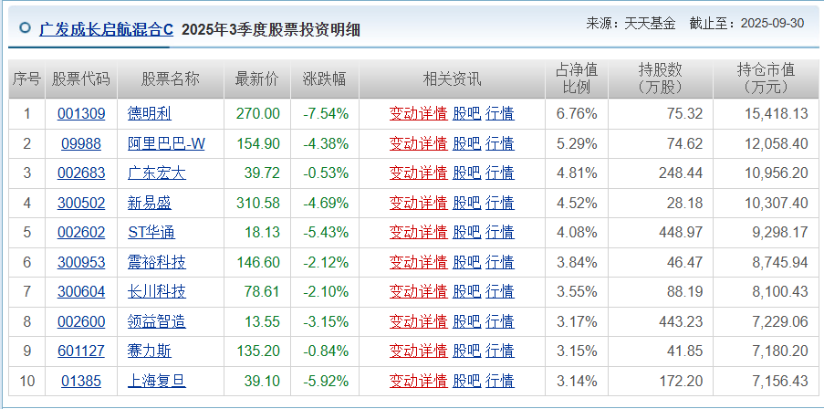 另外,陈经理认为目前新的成长方向是新兴成长,包括算力、CPO、存储、机器人、固态电池、可控核聚变、量子计算、卫星互联网等,其中广发成长启航混合在3季度持仓中,前十大持仓股涉及德明利、阿里巴巴-W、广东宏大、新易盛、ST华通、震裕科技、长川科技、领益智造、赛力斯、上海复旦等多个成长行业优质个股。新兴成长板块比较强的特征是还没落地,所以估值变化幅度大,符合市场规模巨大、行业竞争力的全球比较优势显著,如果可以研究明白股价和产业节奏,获得收益的效果可能也会比较好。